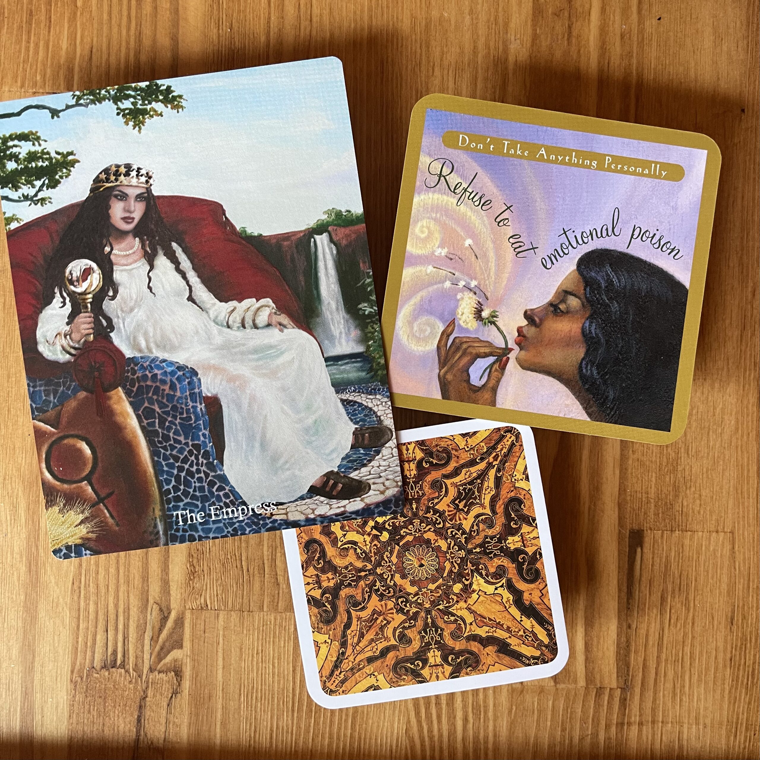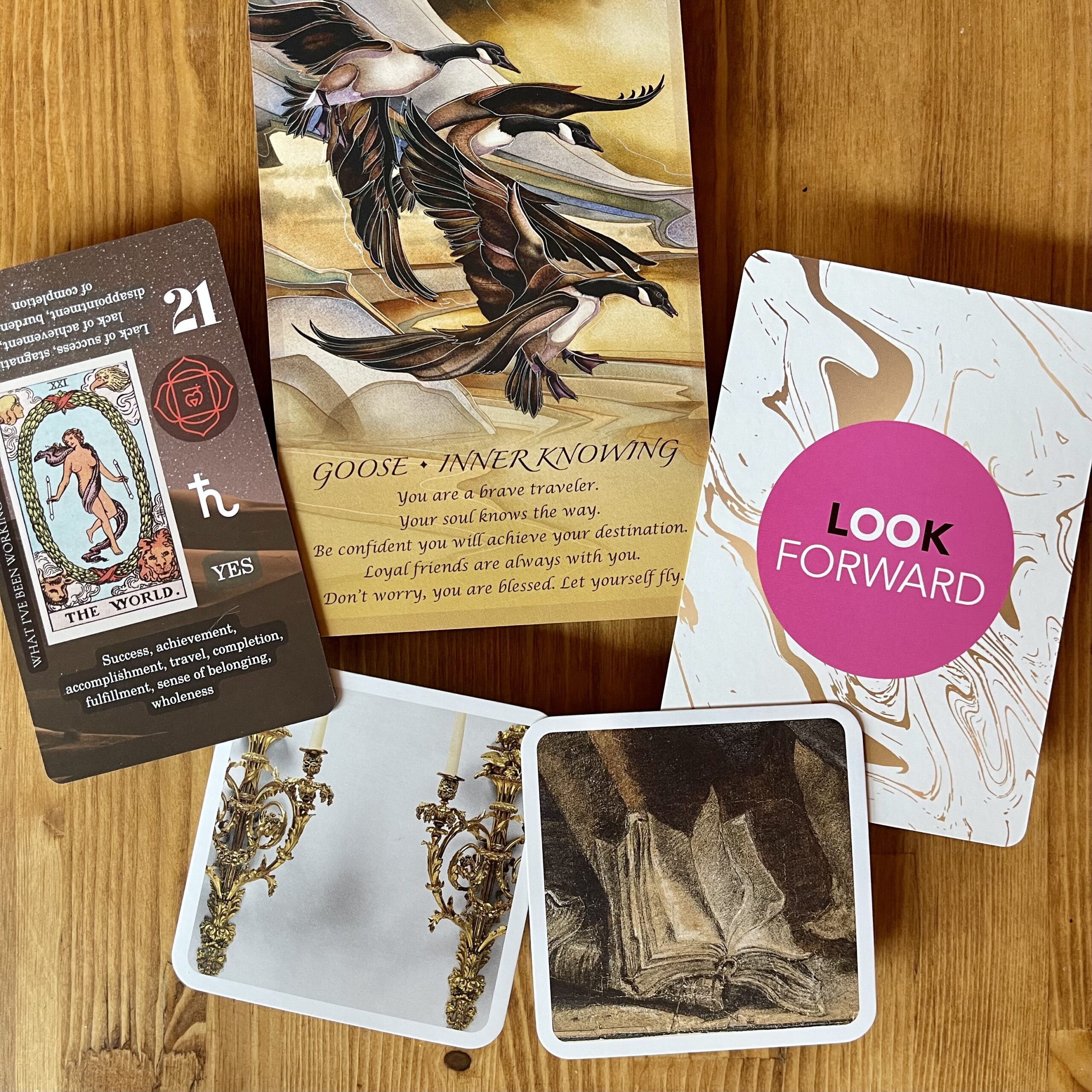 - It includes beautiful images of your curated oracle card spread of 3-5 cards, pulled from my most favorite decks of all time.